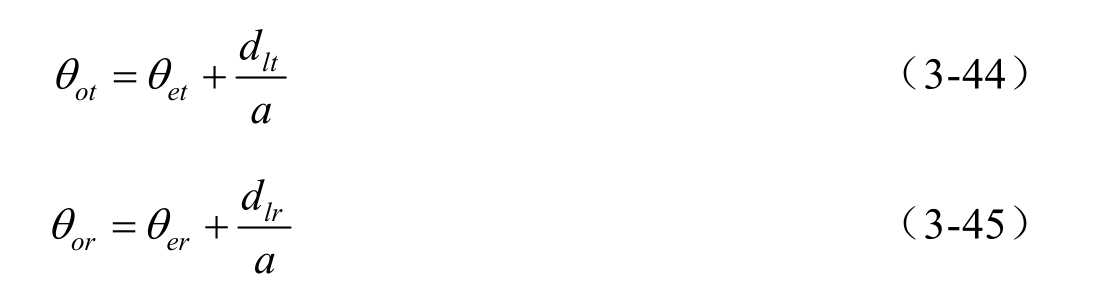 式中,Δ α 0 、Δ β 0 为修正量。设在图3-1中两站的最高障碍点X、Y处波束方向与该地的地平线夹角分别为 θ ot 、 θ or ,障碍点与散射体之间的大圆距离分别为 d st 、 d sr ,修正量Δ α 0 、Δ β 0 是 θ ot 、 θ or 、 d st 、 d sr 的函数。