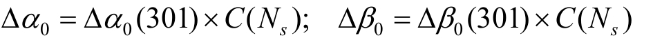 假定地面大气折射指数 N s = 301,首先根据 θ ot 、 θ or 、 d st 、 d sr 查NBS-TN-101图表可得到此时的修正量Δ α 0 (301)和Δ β 0 (301);而后,根据链路实际的 N s 再计算Δ α 0 和Δ β 0 :
