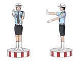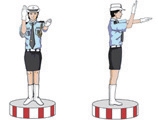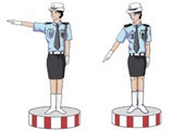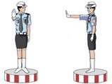 2)停止手势也很明显:手举过头顶,手掌向前(就是阻止的意思)。停止系列有停止和停止辅助(靠边停车)两个动作,所以只要有那个手举过头顶的,但不是停止的手势,就一定是停止辅助(靠边停车)。