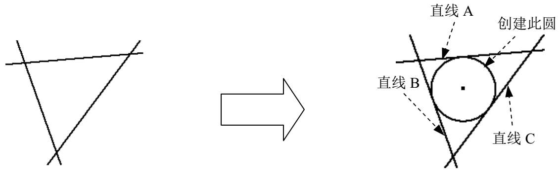 在确定要相切的三条直线后,可以绘出与三条直线相切的圆。下面以图2.4.2所示为例来进行说明。