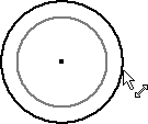 操纵1的操作流程:把鼠标指针 移到圆的边线上,按下左键不放,同时移动鼠标,此时会看到圆在变大或缩小,如图2.5.4所示,达到绘制意图后,松开鼠标左键。