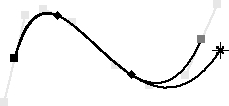 ),此时样条曲线的另一端点和中间点固定不变,其曲率随着指针移动如图2.5.10所示而变化,达到绘制意图后,松开鼠标左键。