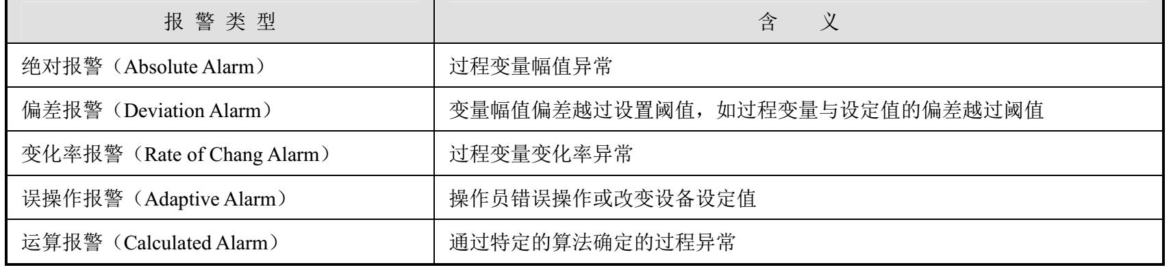 根据工程设备和材料用户协会(The Engineering Equipment and Materials Users Association,EEMUA)和ISA等颁布的国际标准,常见的报警类型共有16种,表2.1给出其中的5种作为参考。