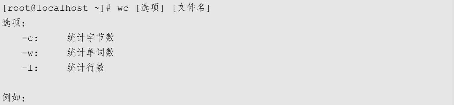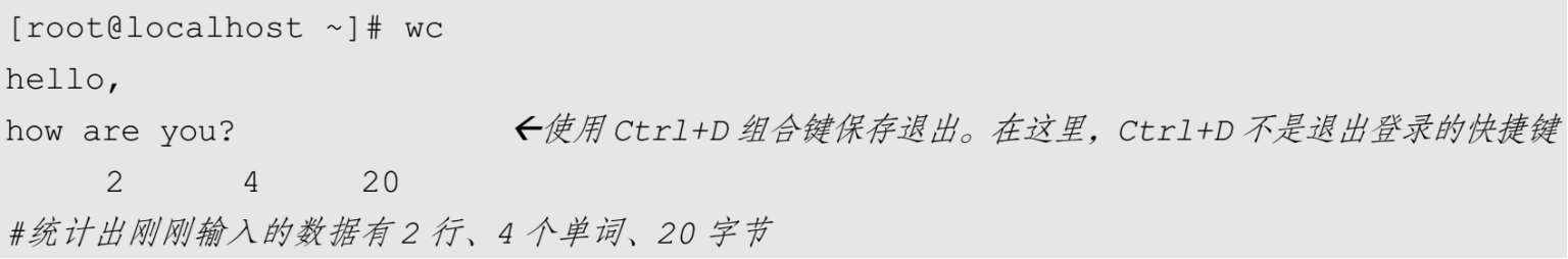 wc命令非常简单,可以统计通过键盘输入的数据。如果使用输入重定向符号“<”,则可以统计文件的内容。命令如下: