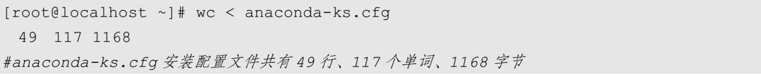 其实,如果直接使用“wc anaconda-ks.cfg”命令,则也是可以统计这个文件的内容的,在这里只是演示一下输入重定向的作用。那么,输入重定向在实际工作中有用吗?输入重定向确实不如输出重定向常见,但是,当需要使用patch命令打入补丁时,就会用到输入重定向。