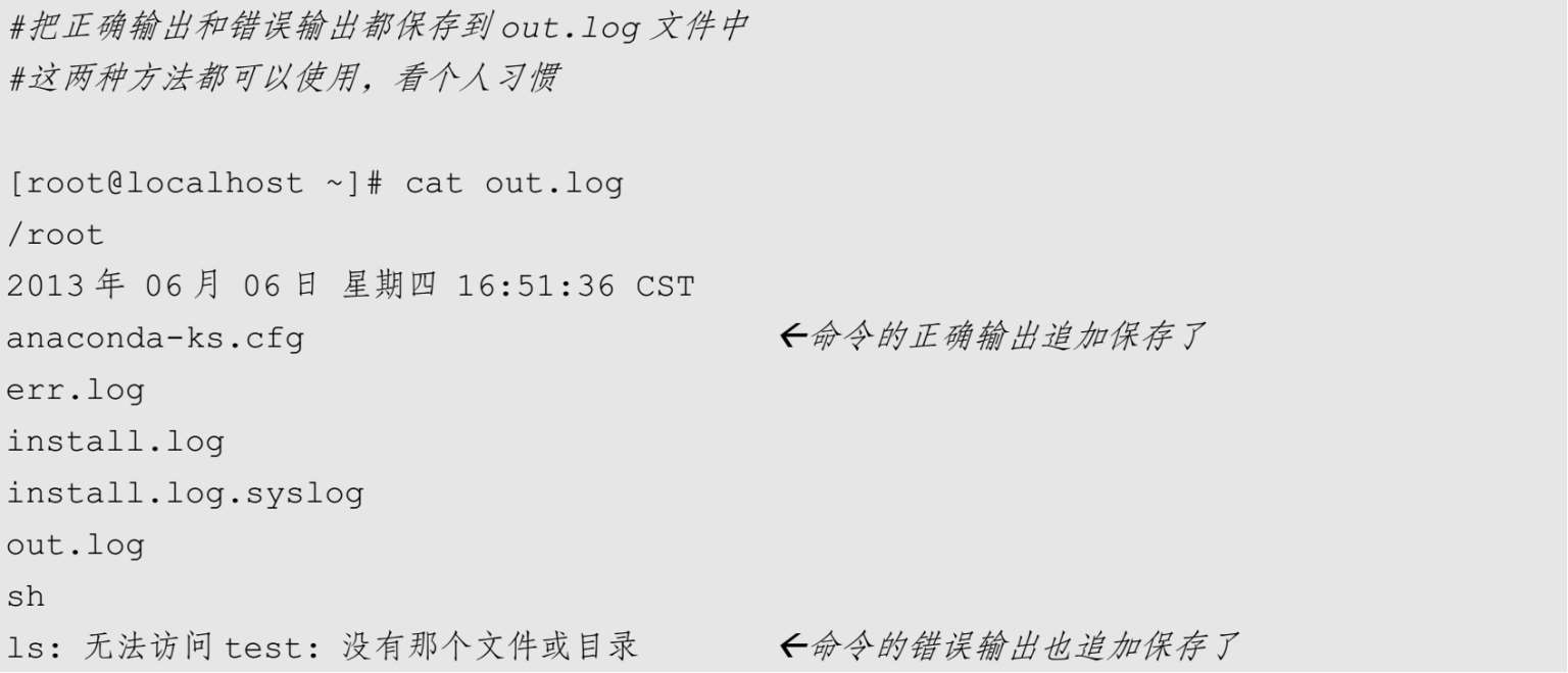 按照个人习惯,这两种方法都可以使用。不过,我们还可以把正确输出和错误输出分别保存到不同的文件中。命令如下:
