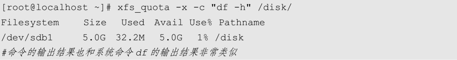 既然磁盘容量限制已经生效,那么我们来查看一下。命令如下:
