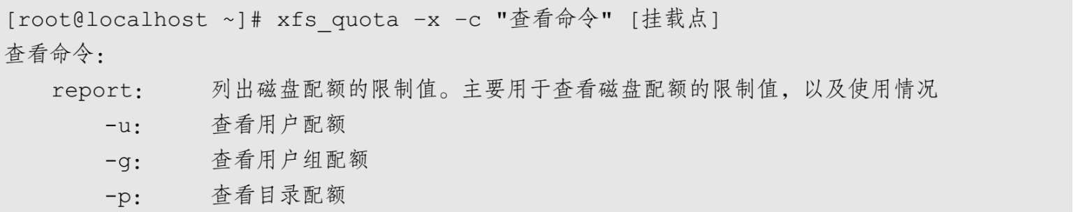 在xfs_quota命令中,先来看一下用于查看的命令的常见选项。