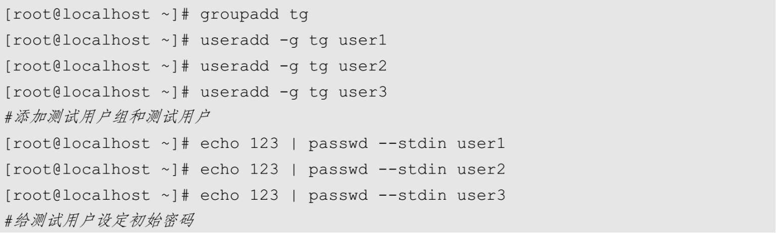 建立user1、user2和user3用户,并把它们加入tg用户组中。