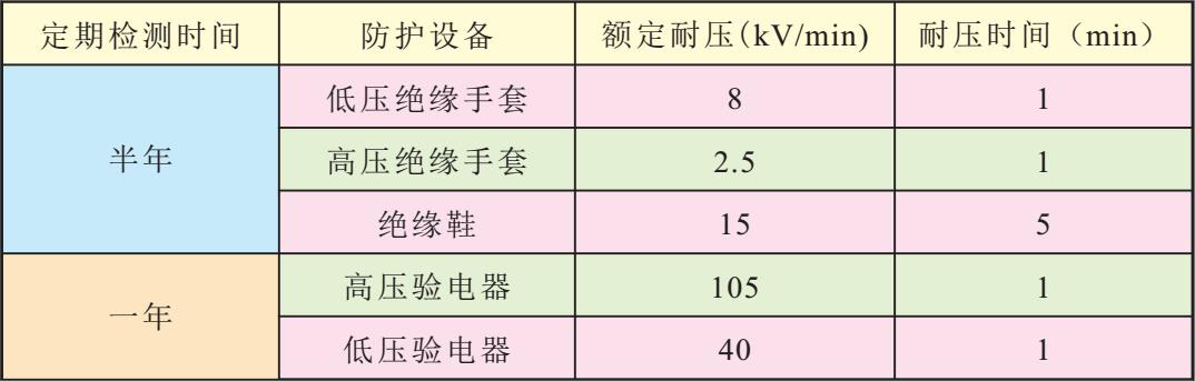 表2-1常见绝缘防护设备的定期检测参数