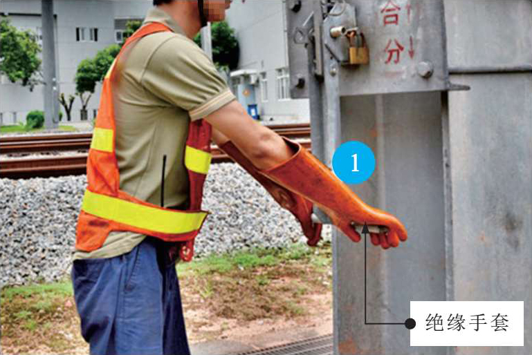 1 电工作业人员在拉合电气设备刀闸时,应佩戴绝缘手套,实现与电气设备操作杆之间的电气隔离。
