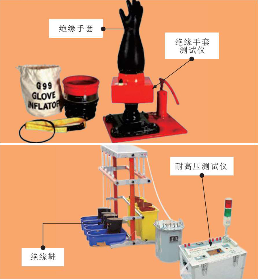 绝缘材料在腐蚀性气体、蒸汽、粉尘、机械损伤的作用下,绝缘性能会下降,应严格按照电工操作规程进行操作,不同的绝缘防护设备均有相应的绝缘测试设备。例如,可使用专业的检测仪对绝缘手套和绝缘鞋进行定期绝缘和耐高压测试。