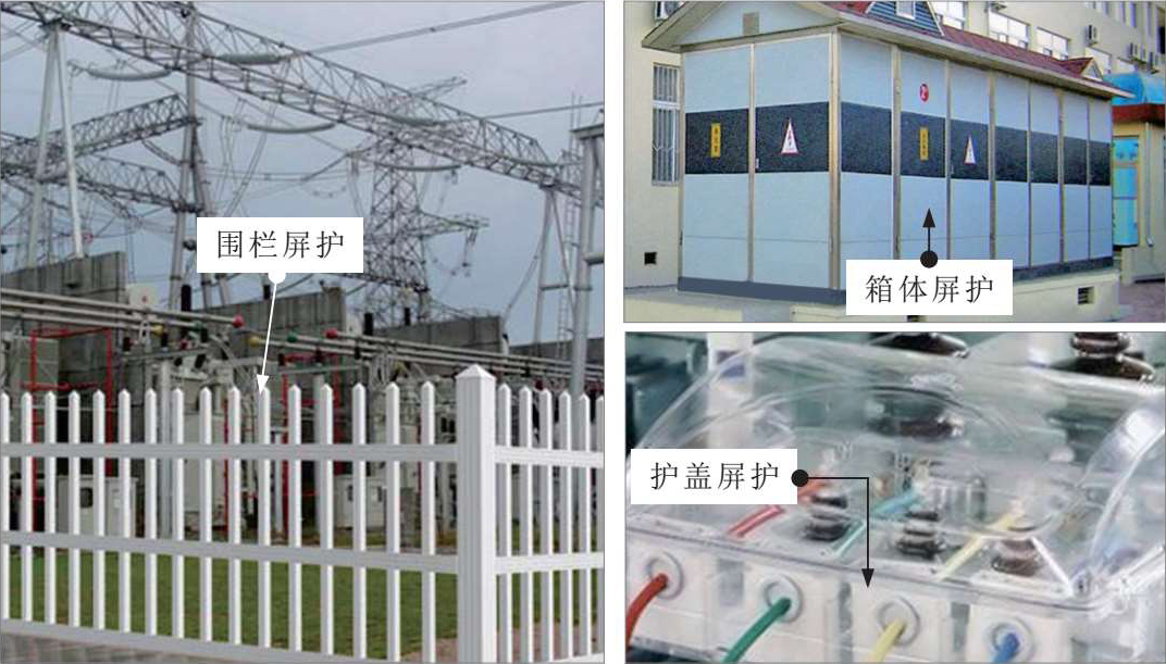 常见的屏护措施有围栏屏护、护盖屏护、箱体屏护等。屏护装置必须具备足够的机械强度和较好的耐火性能。若材质为金属,则必须采取接地(或接零)处理,防止屏护装置意外带电造成触电事故。