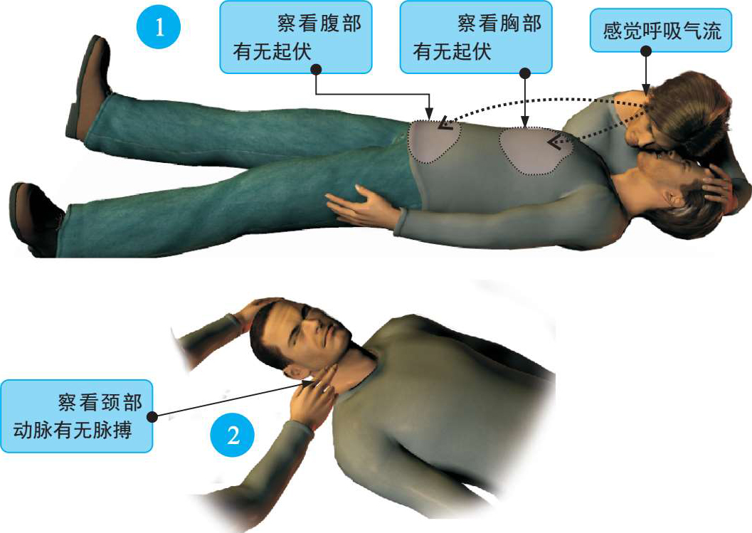图2-19触电后呼吸、心跳情况的判断方法