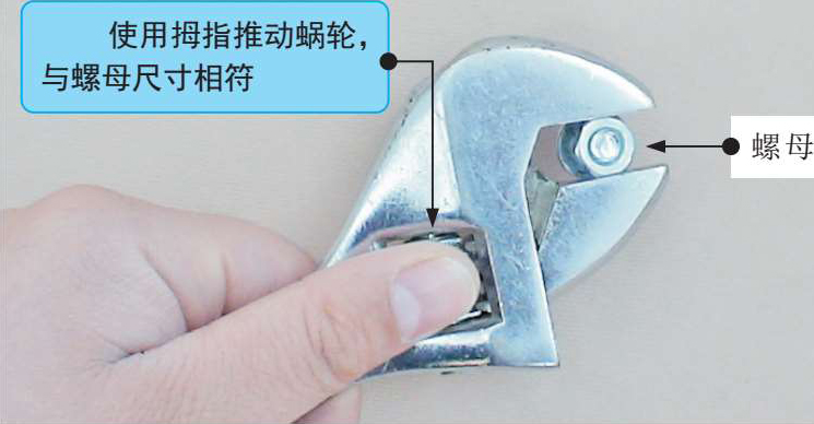 推动活扳手上的蜗轮即可使扳口在一定的尺寸范围内随意调节,以适应不同规格螺栓或螺母的紧固和松动。