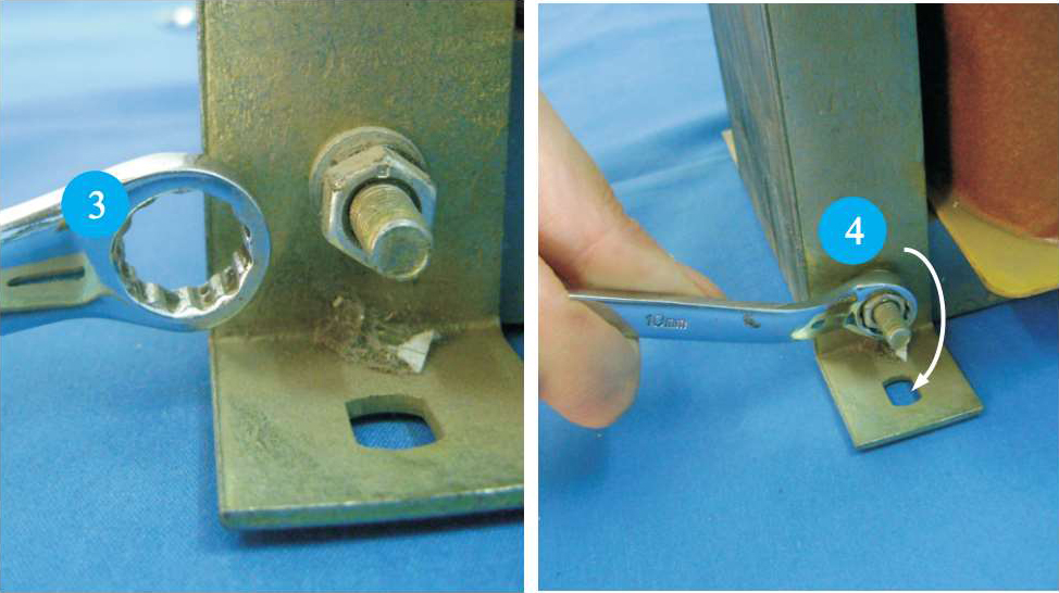 2 用呆扳手的开口夹柄卡住螺母,然后握住手柄,与螺母成水平状态转动。