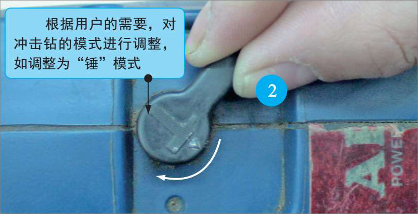 2 冲击钻有两种功能:一种是将开关调至标识为“钻”的位置,可作为普通电钻使用;另一种是将开关调至标识为“锤”的位置,可在砖或混凝土上凿孔。