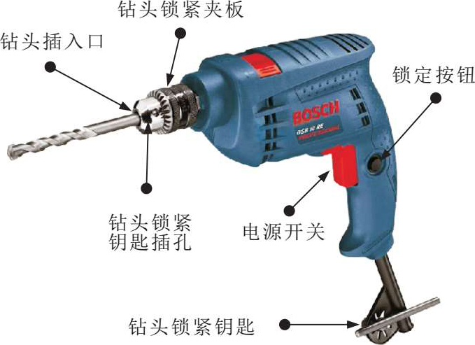 电锤常用于在混凝土板上钻孔。图3-24为电锤的实物外形。