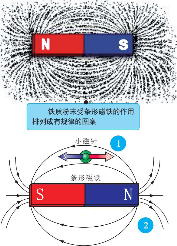 2 磁力线是为了理解方便而假想的,即从磁体的N极出发经过空间到磁体的S极,在磁体内部从S极又回到N极,形成一个封闭的环。磁力线的方向就是磁体N极所指的方向。