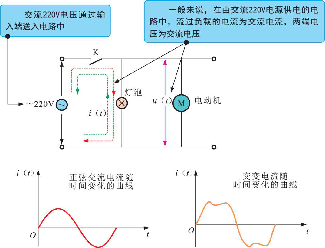 图1-5为交流电的特性。交流电流的大小和方向随时间的变化而变化,用AC或ac表示。