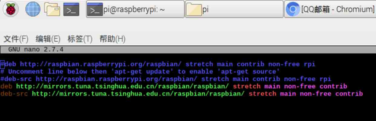 deb http://mirrors.tuna.tsinghua.edu.cn/raspbian/raspbian/