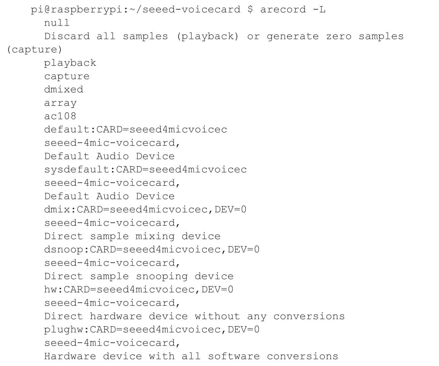 步骤04 检查声卡名称是否与源代码seeed-voicecard相匹配。
