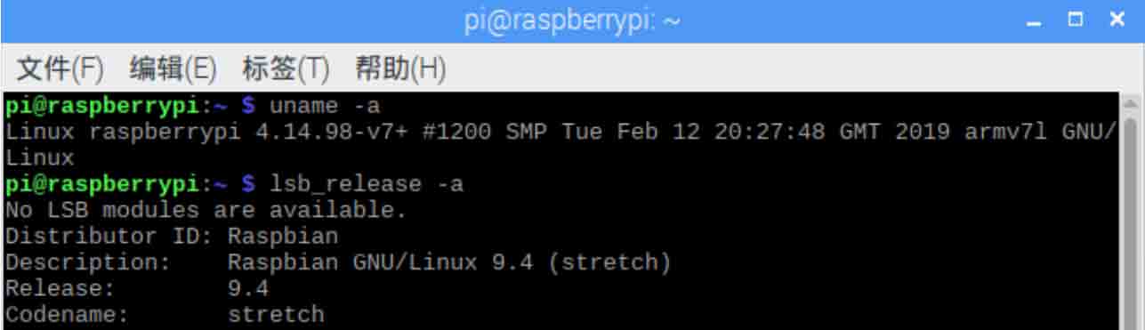 因为当前的Pi内核不支持wm8960编解码器,所以需要手动构建。确保你正在Pi上运行Raspbian操作系统(debian 9)。你可以用etcher进行系统烧录。输入如图3-4所示的指令可查看树莓派操作系统版本。