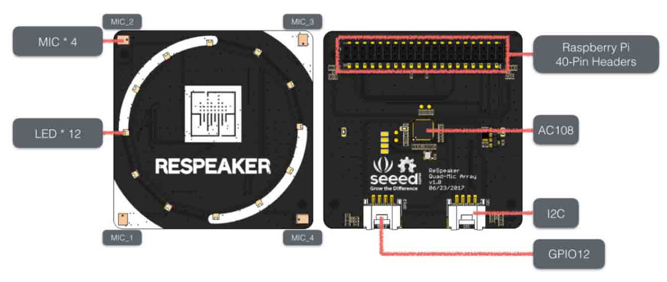 基于Raspberry Pi的ReSpeaker 4-Mic阵列由以下硬件构成(见图3-2):