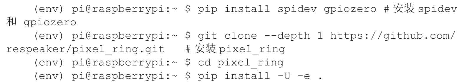 此时,在虚拟环境下运行“python pixels.py”,你可以看到LED像Google Assistant灯光一样闪烁,如图3-12所示。