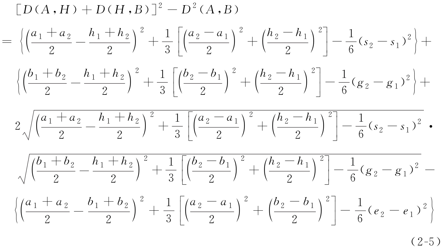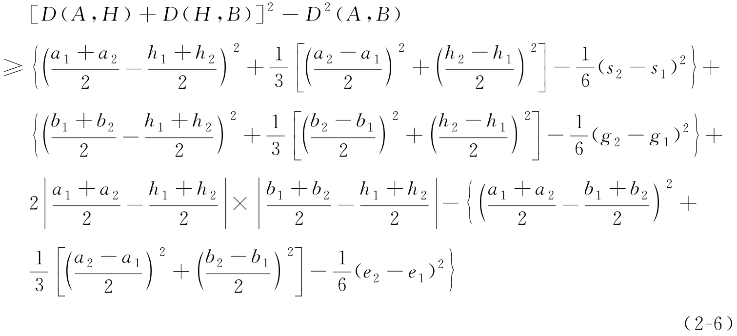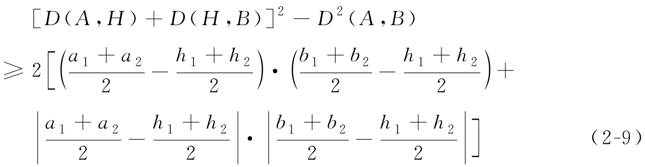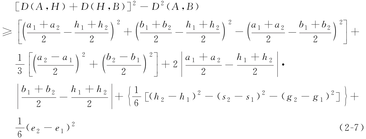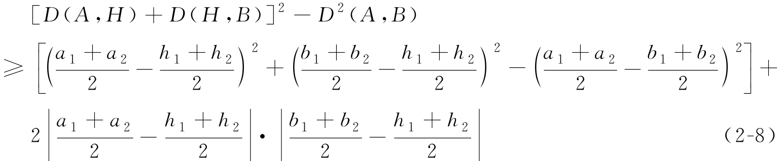 [ D ( A , H ) +D ( H , B )] 2 -D 2 ( A , B )≥2 M ≥0