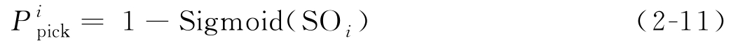 (2)概率转换函数。指将客户需求群相似度转化为个体移动待聚类需求物元 S i “拾起”或“放下”物体的概率函数。“拾起”概率 P pick 与“放下”概率 P drop 分别为