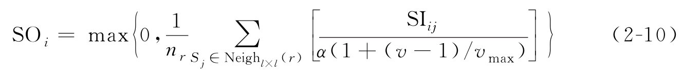 式中,Neigh l × l ( r )表示位置 r 周围的边长为 l 的正方形邻域;SI ij 为需求物元 S i 与 S j 的物元相似度; n r 为位置 r 周围邻域内包含的需求物元个数; α 为群体相似性参数; v 为蚂蚁的移动速度; v max 为蚂蚁最大移动速度。