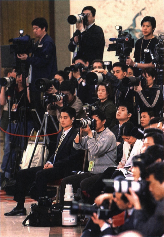 2002年3月15日,九届全国人大五次会议举行记者招待会。图为到会的中外记者。 (新华社记者王晔彪摄)