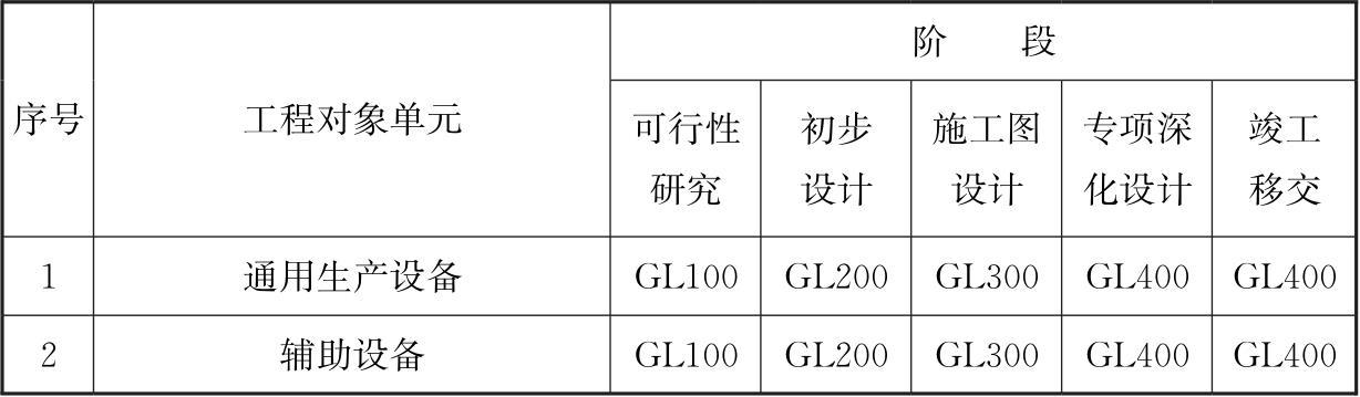 5.2.1 工艺专业各阶段模型几何图形深度等级,不应低于表5.2.1的规定。