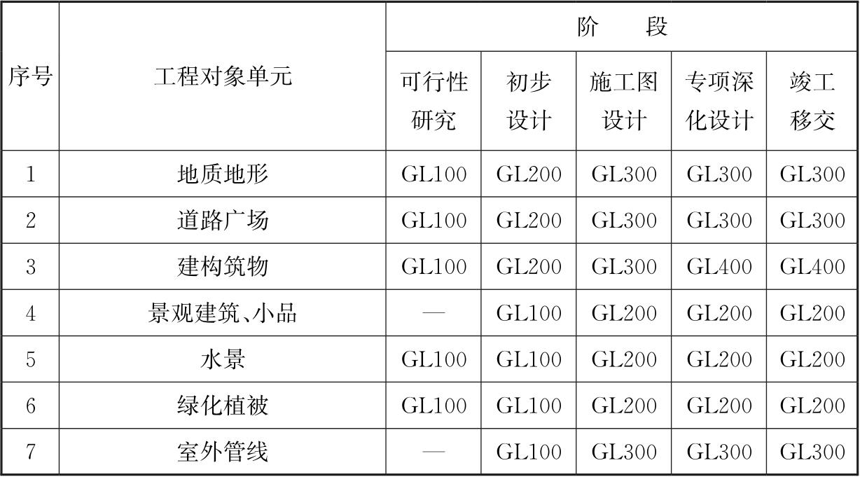 5.3.1 总图专业各阶段模型几何图形深度等级,不应低于表5.3.1的规定。
