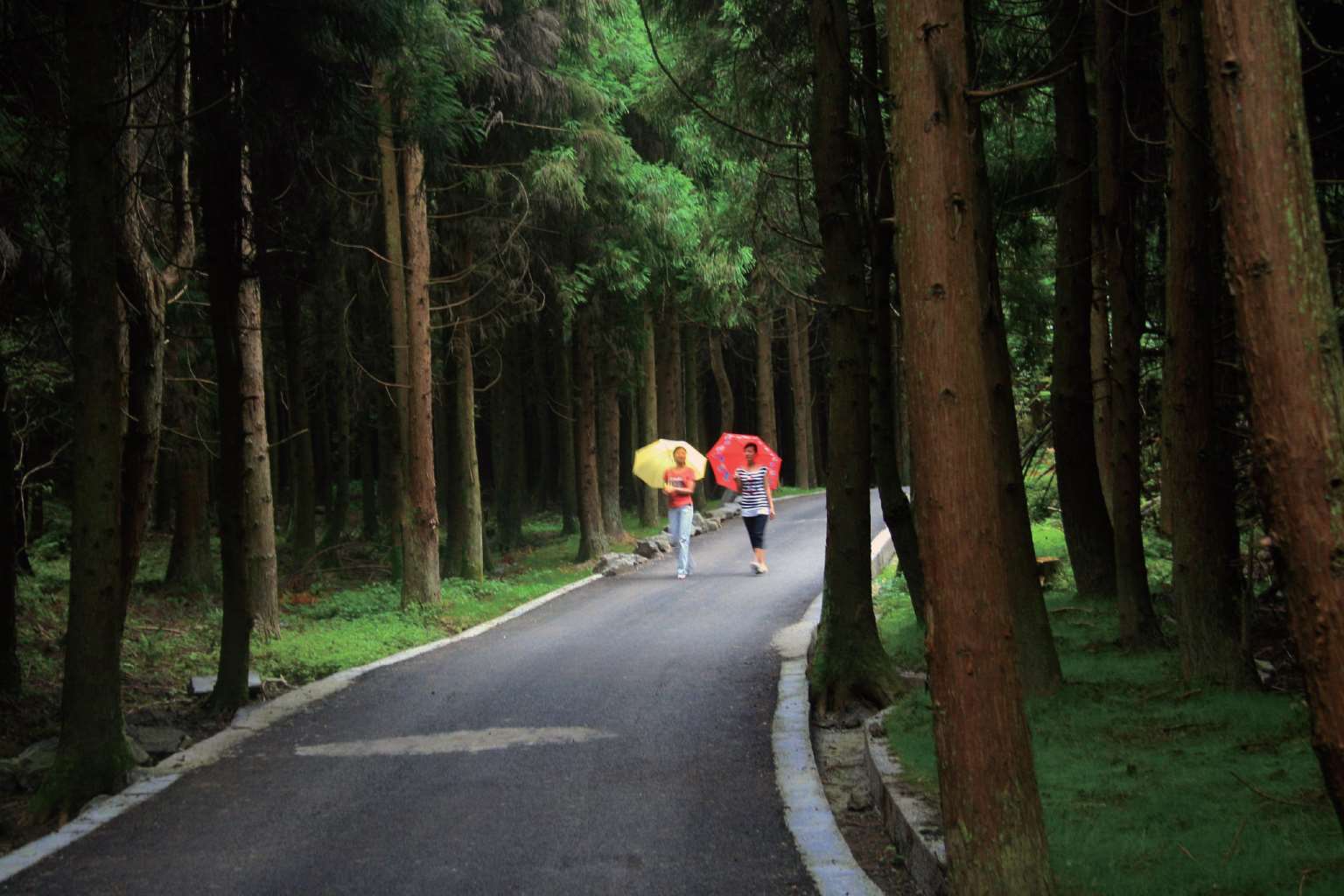 头上是白云朵朵,身边是欢声笑语,一路上群山叠嶂,飞驰的汽车就像闯进了一片没有尽头的绿色海洋,间或能看到远方山峦起伏处的云雾。