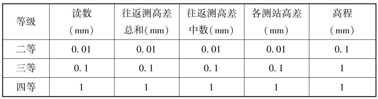 4.3.3 水准测量各等级读数和计算取位应符合表4.3.3的规定。
