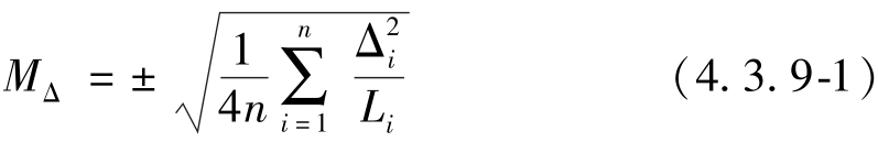 1 平差前每条水准路线若分测段进行计算时,应按往返测高差较差计算每千米水准测量高差的偶然中误差, M Δ 的绝对值不应超过本标准表4.3.1规定的各等级每千米高差全中误差的一半,每千米高差的偶然中误差 M Δ 按下式计算: