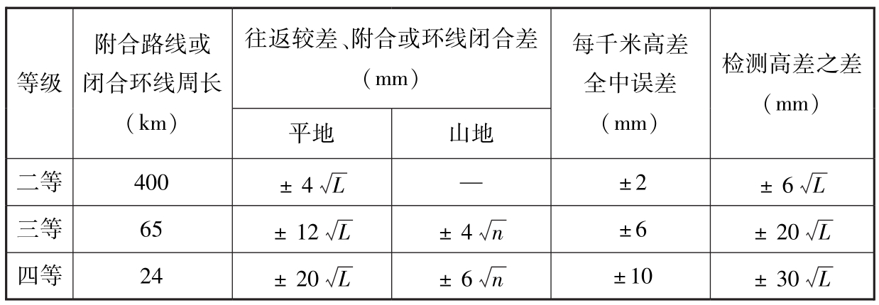 注:1 水准网的结点与结点、结点与高级点间的路线长度不应超过表中规定的70%;