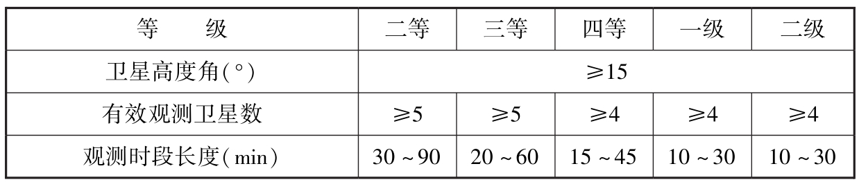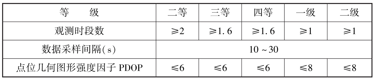 3.2.7 GNSS控制网观测的主要技术要求应符合表3.2.7规定。