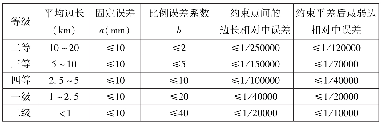 2 对于已知坐标、距离或方位,应强制约束或加权约束。约束点间的边长相对中误差应满足本标准表3.2.1中相应等级的规定;