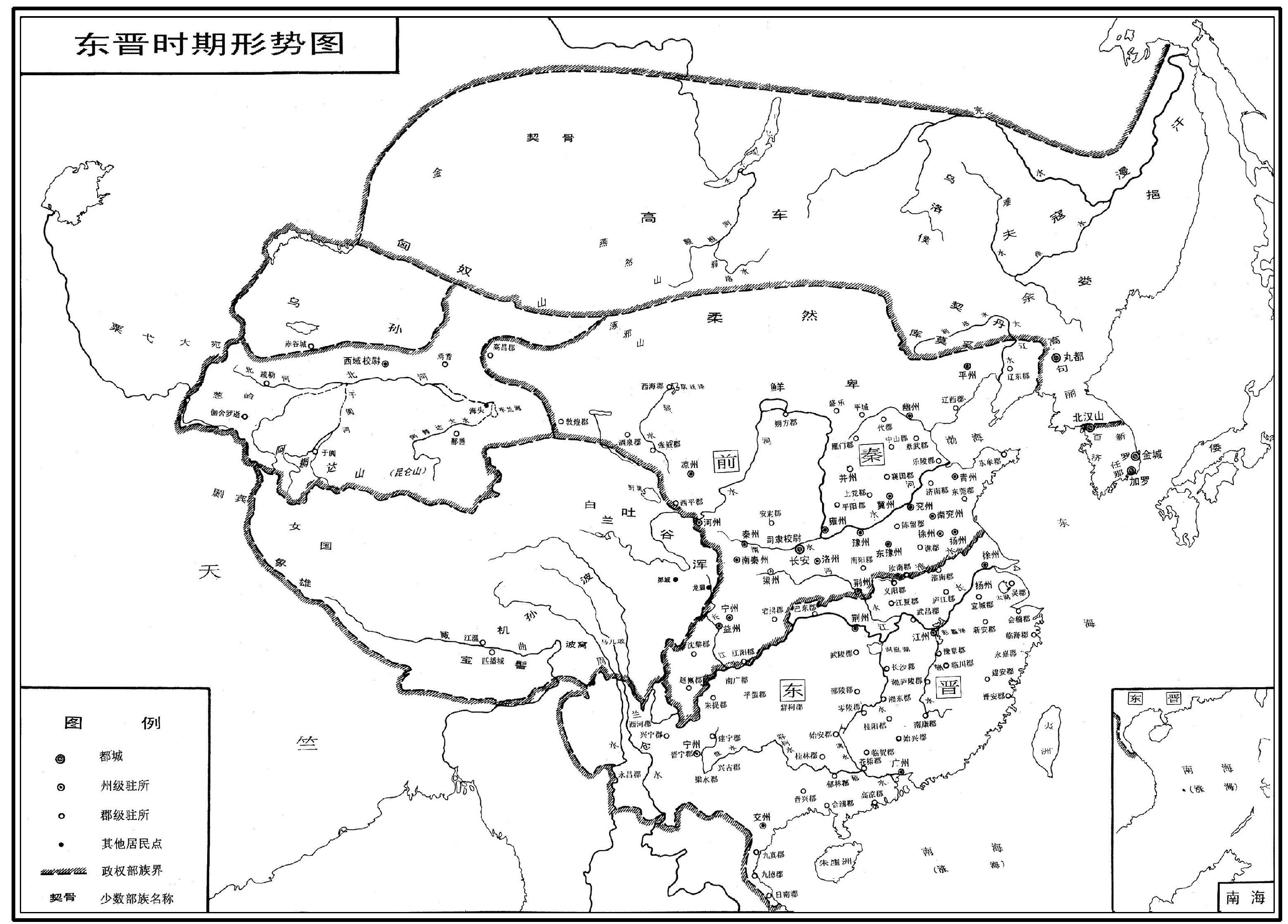 晋太元七年、前秦建元十八年(382年) 据《中国历史地图集》改绘