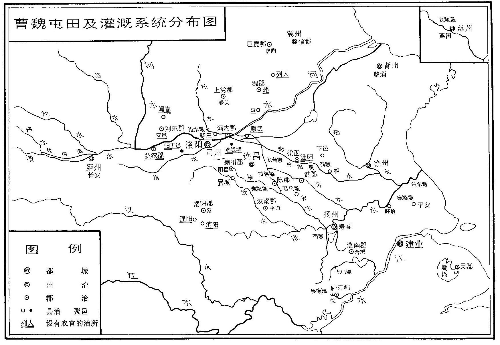 。此外为了供应前方的粮饷起见,也选择军事重镇如雍州的长安(今陕西西安市)、上邽(今甘肃天水市西南)、扬州的芍陂(今安徽寿县南)、皖城(今安徽潜山)等地,兴立屯田