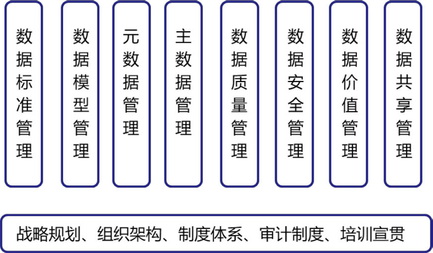 在DAMA的数据管理理论框架中并没有把数据标准单独作为一项重要的数据管理功能,而《数据资产管理实践白皮书(4.0版)》将数据标准管理放在第一位,体现了“标准先行”的管理思想。另外,其中还增加了数据价值管理和数据共享管理两项内容。