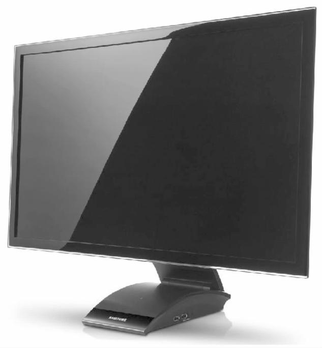 三星C23A750液晶显示器采用LED背光,最大的看点是提供了强大的无线连接技术,显示器的底座就像一个强大的扩展坞,集成了网线接口、USB Hub、音频等接口。过去需要连接在笔记本上的线,现在统统连接到显示器上就可以了。当你将笔记本电脑拿到三星C23A750系列显示器面前时,无线发射器会自动与显示器进行匹配,瞬间你笔记本上的画面就被扩展到了显示器中,另外,三星C23A750显示器提供了USB 3.0的快速连接,数据传输速率非常快。三星CA230液晶显示器的外观如图3-1所示。下面介绍其拆卸方法。
