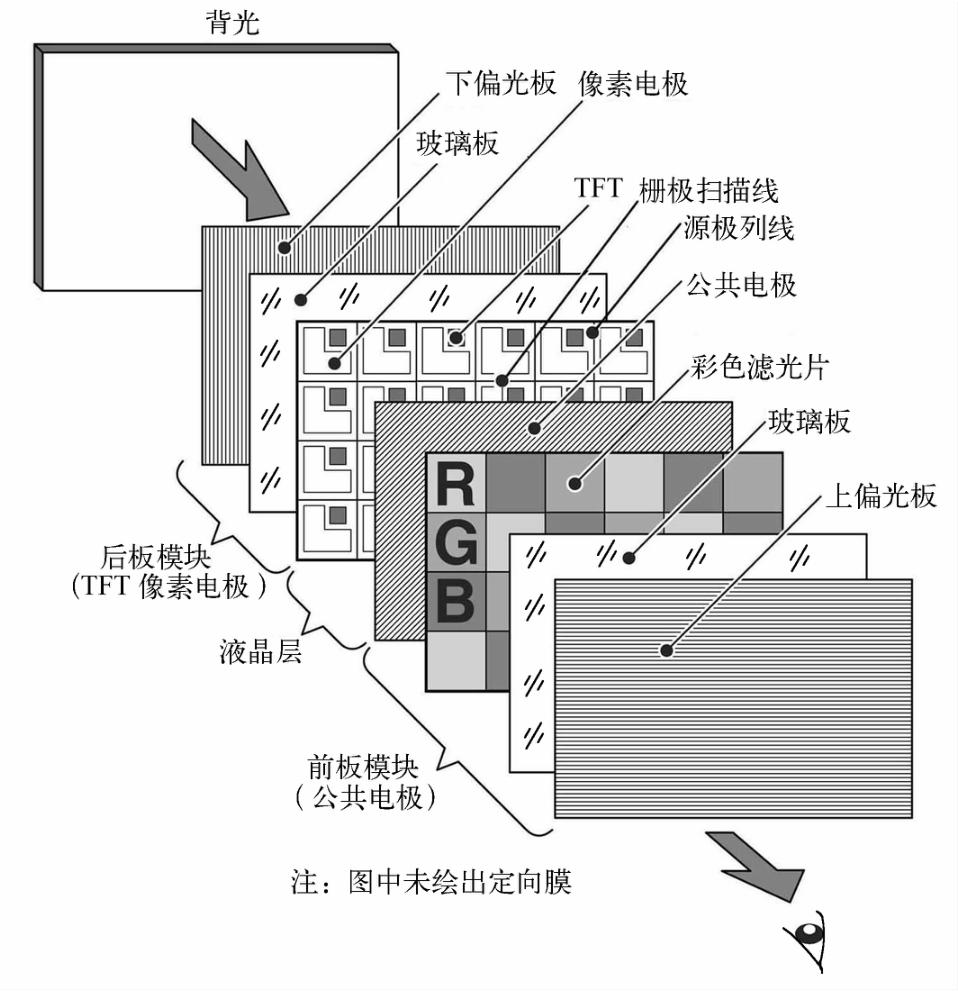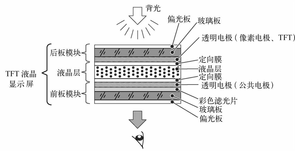 图1-12 TFT液晶显示屏的横截面结构示意图