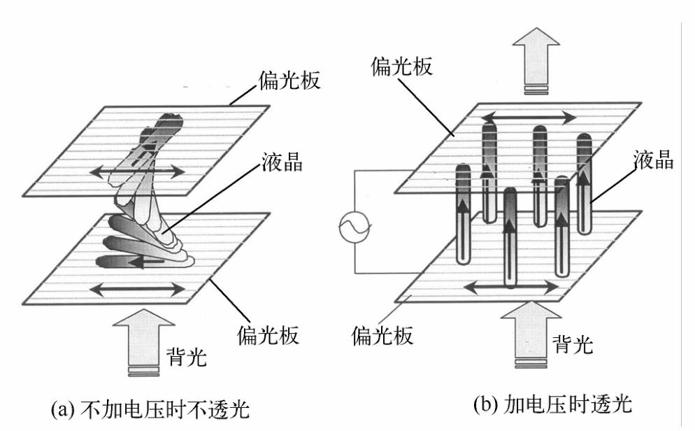 图1-3所示为TN液晶显示屏的工作原理示意图。