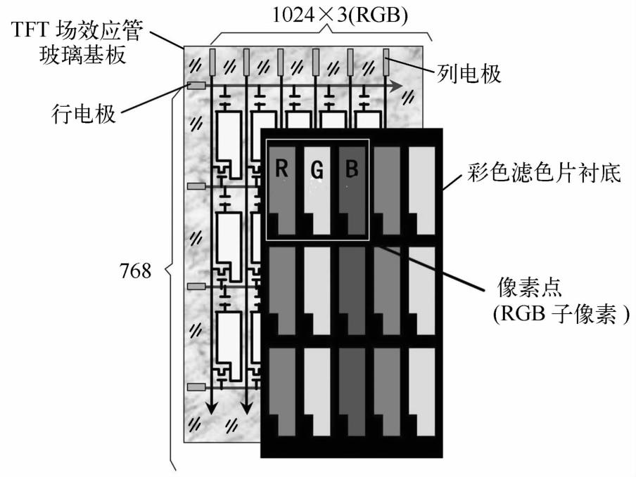 图1-13 TFT液晶显示屏矩阵像素结构示意图
