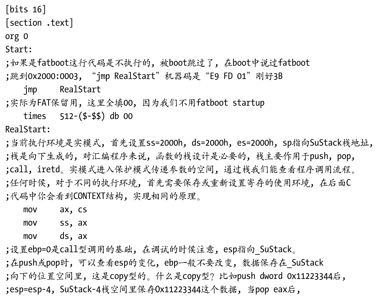 1.FAT Boot。采用这种方式时,由boot跳转到物理地址0x2000:0003,略过前面3B。这3B是一条跳转指令“jmp RealStart”。因此这条指令将不被执行,于是转入属于fat startup的代码里执行。