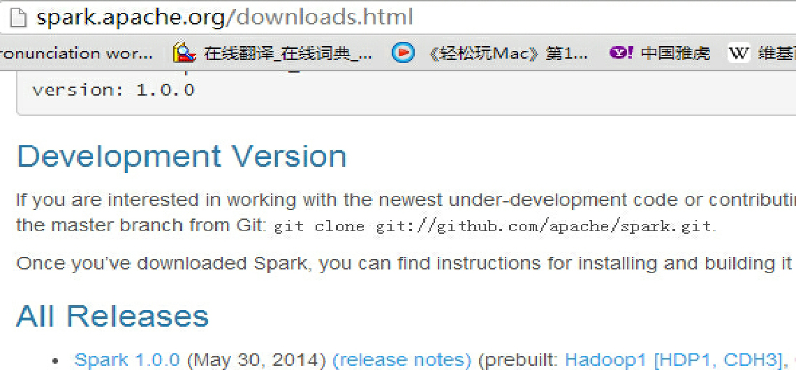 (1)Spark 1.0.0,笔者这里使用的是spark-1.0.0-bin-hadoop1.tgz,具体的下载地址是http://d3kbcqa49mib13.cloudfront.net/spark-1.0.0-bin-hadoop1.tgz 3,如图2-47所示。